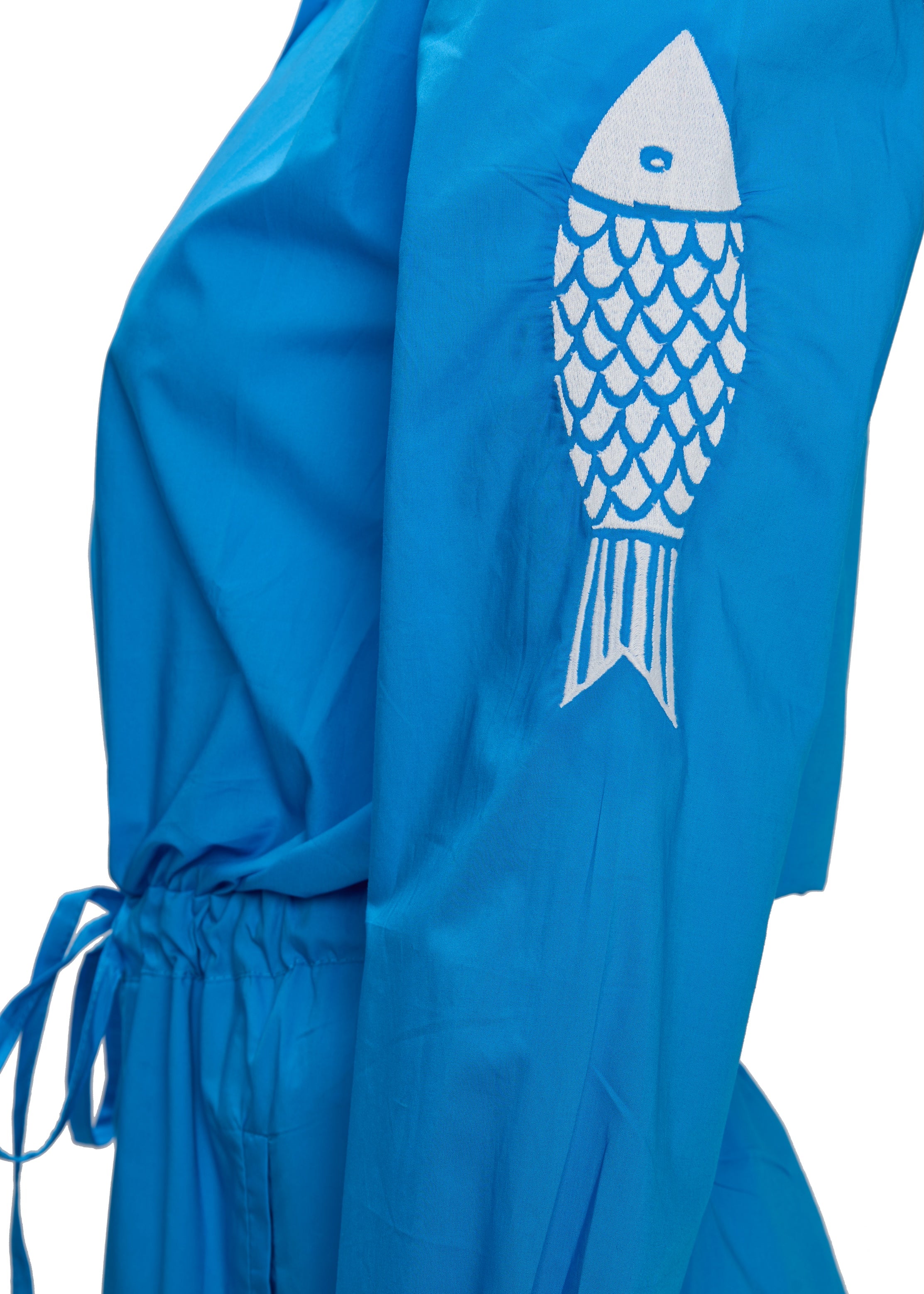This Aster Petrol Fish Jumpsuit offers a relaxed fit crafted from breathable cotton, ensuring comfort throughout the day. Its distinctive embroidery adds a refined, artisanal touch, making it a versatile piece that combines casual ease with subtle sophistication. Ideal for warm weather, this jumpsuit balances style and comfort effortlessly.