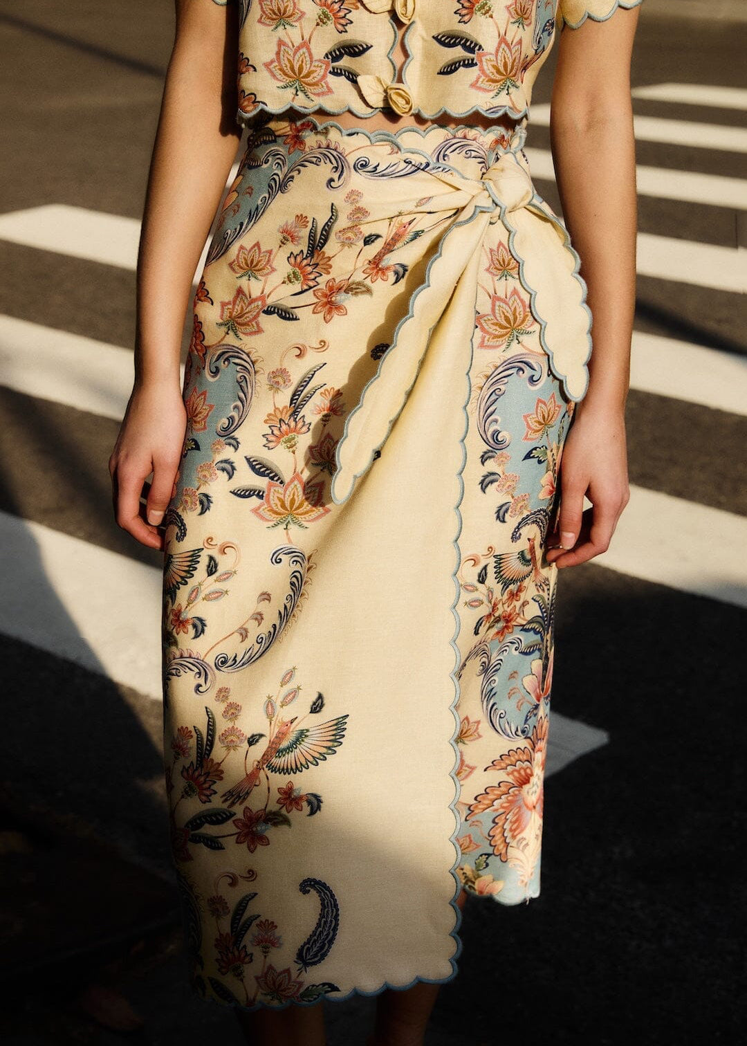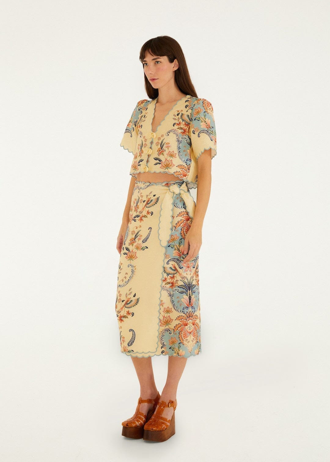 This butter yellow midi skirt by Farm Rio epitomizes summer elegance through its refined boho design. Woven from pure linen, the fabric offers natural breathability and a luxurious drape that flatters the silhouette. The understated aesthetic celebrates minimalist sophistication, making it an ideal foundation piece for curated warm-weather wardrobes. Invest in quality craftsmanship that transcends seasonal trends.