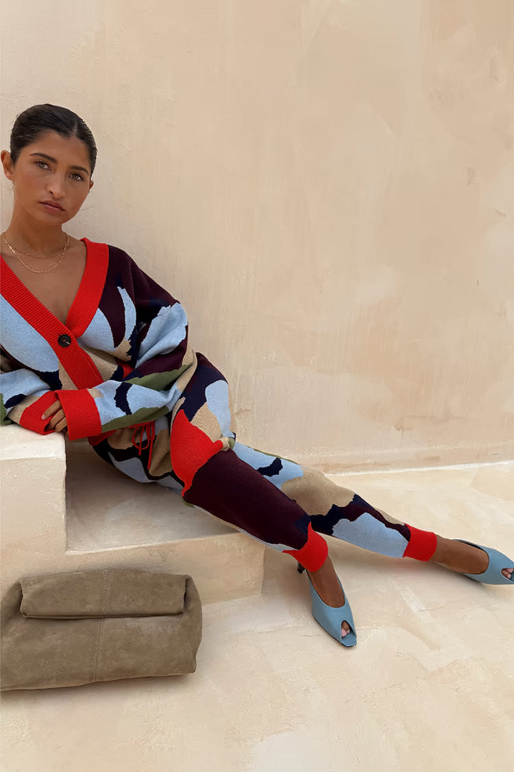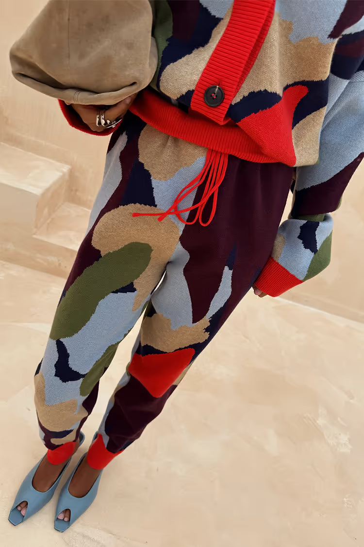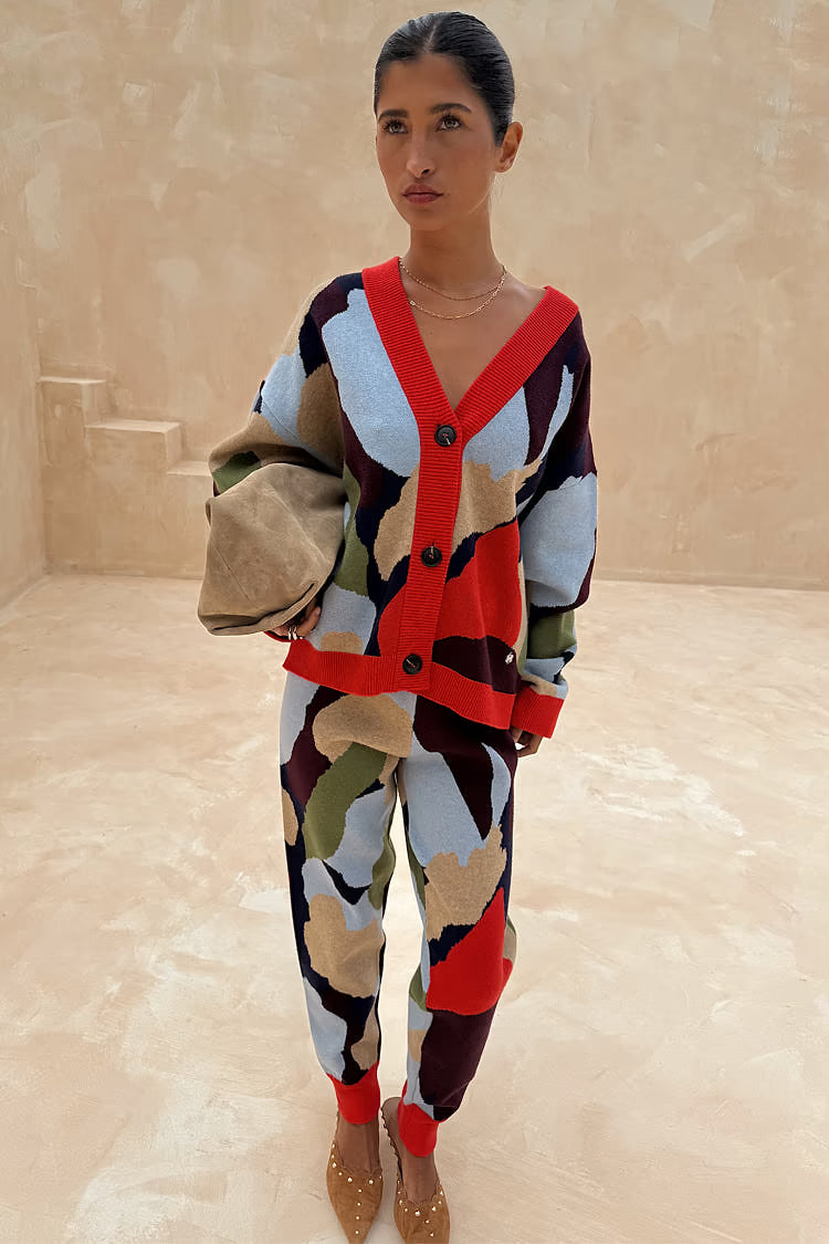 Description: Inject some fun into your look with this lively update of our classic artist print! These joggers feature a soft, comfortable feel and bright colors that instantly lift any outfit. The playful red trim on the cuffs adds a quirky twist to the simple design. Pair them with the matching Dorris skirt for a coordinated vibe or keep it casual with a tank and jeans for effortless style.