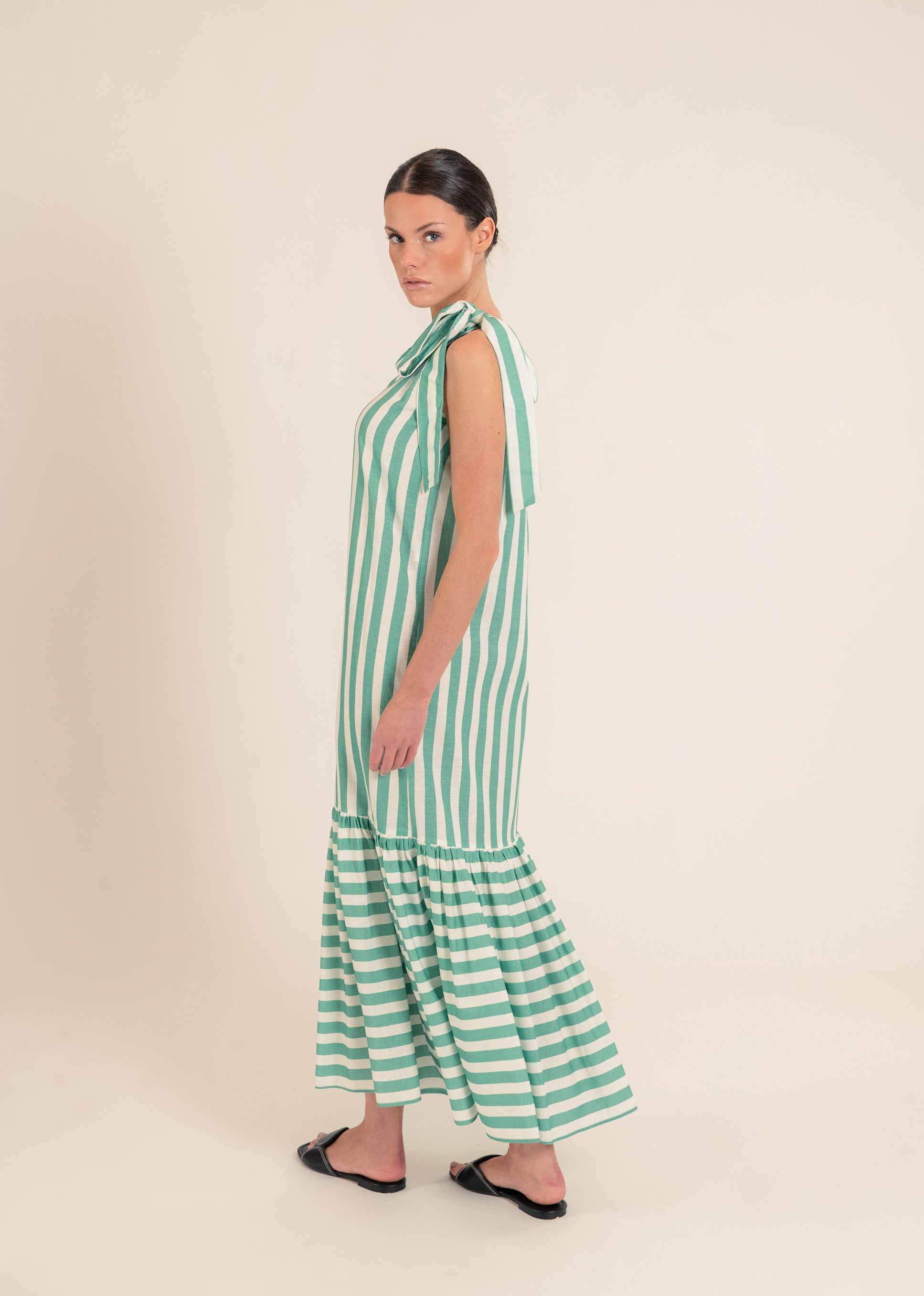 The Teresa Green Stripes Dress captures effortless summer elegance with its striking green and white striped pattern. The asymmetrical one-shoulder design creates a refined, contemporary silhouette that flatters while maintaining an understated sophistication. Crafted by Galeria, this piece seamlessly transitions from daytime outings to evening occasions, offering versatile styling for the discerning wardrobe. Perfect for warm-weather occasions where chic simplicity speaks volumes.